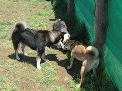 行きは、思いのほか順調なペースでドッグランまでたどり着きました。コマちゃんと駒姉のホームグラウンドなので、もしかして会えたりするかなぁーなんて思いながら入場料(1000円とちょっとお高め^^;)を払い、いざ中型犬用スペースとやらへ。大型犬と遊びたいんですけど入れないんですか?と聞くと、「そうよく言われるんですけど、大型犬の飼い主さんが嫌がるんですよね・・・」とのお言葉。なるほどそうなんだーとちょっと意外な感じ、でも考えてみるとほとんどの場合、犬同士の事故があったとしたら加害者になる可能性は大型犬側にきっと多いわけで、自動車と原チャリの事故みたいなもの。そう思うと大型犬の飼い主さんの気持ちもわからなくもないなぁ。