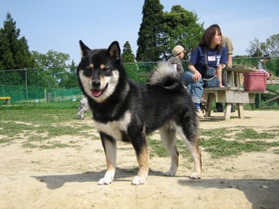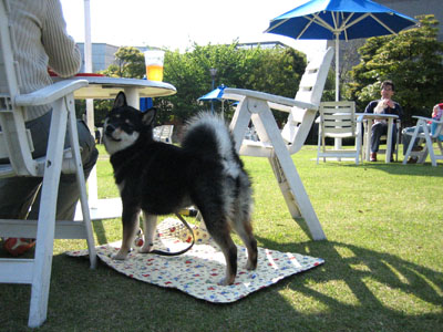 ワンコは、へえ~って言うほど柴ワンコが多くてびっくり。黒柴を含め、おそらく6頭はいたと思う。中型犬という括りからすると柴ワンコは中核的存在なのだと改めて実感させられました^^ 結局2時間ほど遊んで、どうもコマちゃんもジャマワンちゃんも来そうにないので、渋滞に巻き込まれる前に帰ることに、というよりうちの近所のホテルでペット博にちなんで特設ドッグカフェをやってるという話をロコママさんのブログで読んで行ってみようってことになってたので。