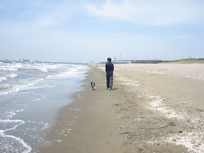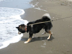 波打ち際で遊ぶのはいいけど、足が濡れるのはやっぱりちょっと嫌だなぁ~^^;毎日散歩の後の足洗いでさえ、やっとこさ慣れてきたとこなんだよねぇ。