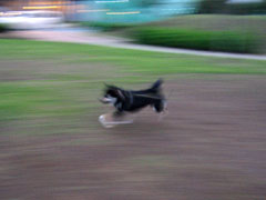 フレブルくんと激走するもも。他の飼い主さんを唖然とさせるほどのご両人の走りっぷりで、1メートルほどの段差の勾配を上の段からひとっ跳び、おいおい飛んだよ~(笑)ぐっさんとももハハは冷や汗ものでした~^^;