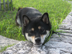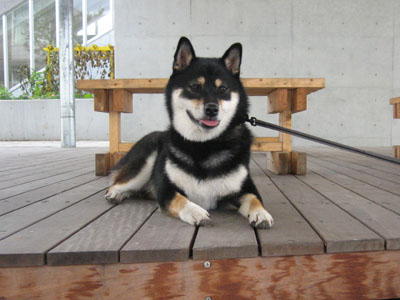小学校脇にあるウッドデッキ。散歩の途中によくここでひと休みします。風が抜けてとても涼しい場所。もものお気に入りです^^