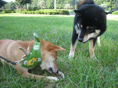 少し早い夕方散歩にでかけた公園で、夏にはとてもできなかったももとの追いかけっこ。さすがにもう息が切れることもないねぇー^^