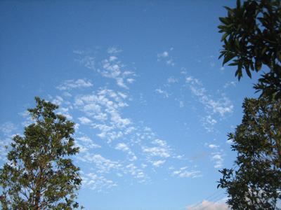 ひとしきり遊んだ後に芝生に腰を下して見上げるとこんなに高い空。イワシ雲のできそこない?(笑)
