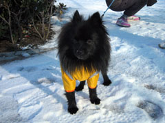 アパートを出ると同じアパートに住んでるお友達犬のポメのシュプくんとばったり。お顔がちゃんと見えなくてごめんねぇー^^;って感じですけど、実はシュプくんは、真っ黒クロスケなのです。ホントにぜーんぶまっくろで、ももと違ってフワッフワの毛が羨ましいぃー。ももと二人遊んでいると黒い毛玉が二つって感じなのです(笑) てことで、雪がいっぱい積もった歩道で、こんな感じで遊んじゃいました。