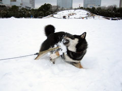 で、負けじと?ももと雪合戦!たぶんももはボールのつもりで雪玉を喜んでキャッチしてるんでしょうけどね^^;銜えても無くなっちゃうからあれ?!って感じで、だけどとってもはしゃいで可愛かったです。