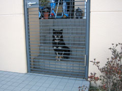 たびちゃんは、いつもこんな風にエントランスの階段にちょこんと座って外を眺めています、可愛いでしょっ!