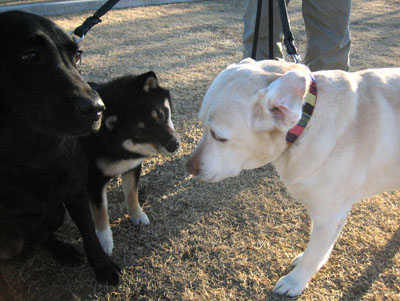 本日3回目の散歩。同じ棟に住んでいるわんこ友達トイプードルのモコちゃんのご主人様えずみちゃん(小学生の超美少女。密かにぐっさんはファンクラブ設立を目論んでいる!これマジ。)に尋ねられる素朴な質問に「一日何回散歩してるの?」「(ぐっさんに)会社行かなくていいの?」など、小学生も不思議がる散歩頻度なのかっ!やっぱり?^^; ともかく、本日3度目(笑)で、スポーツ公園で会ったラブラドールの女の子達。とっても利口でやさしい子達でしたぁ。