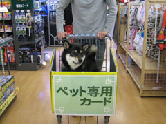 ドッグランの帰り道、大きなホームセンターにもものオヤツやら罪滅ぼしに買い物に寄りました♪例によってカートに乗るのはお嫌らしく、正直困惑顔のもも嬢でございます^^;話しはよれますが「ペット専用カード」って「カート」でしょ(笑)