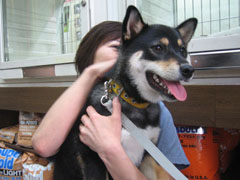 フードが無くなりそうなことに気付き、購入がてら突然ですがブリーダーさんに会いに行ってきました。近頃お姉さんになってきたからなのか車酔いもほとんどしなくなり、今までならヨダレ→ゲロというパターンでしたが全くそんな様子も無く元気いっぱいで到着、お店に入るなりシッポフリフリでブリーダーさんの登場をお行儀良く座って待っていました。