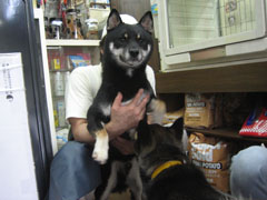 その後挨拶に出てきてくれた、これまた超久しぶりのお父さん犬の悟天くん!おぉー、相変わらずの凛々しい男顔!やっぱり悟天くん、かっこよくブリーダーさんのご主人に抱えられて仁王立ち。ももは久しぶりのお父さんとの再会ですがぽかんとして、だ~れ?といった感じ^^;