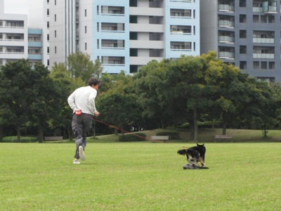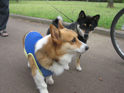 帰り道、花時計の公園で久しぶりに大走りのぐっさんともも。日に日に足下がおぼつかないぐっさん^^;