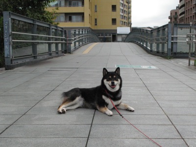 食後にひとっ走りしたからか、帰りの歩道橋の上ですっかりくつろいでしまったもも(笑)