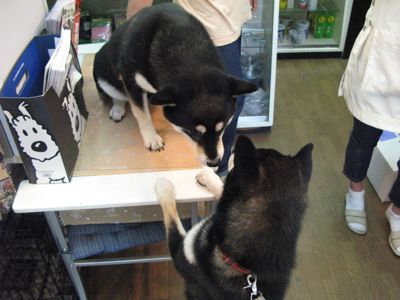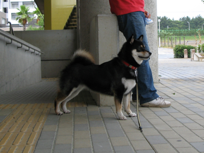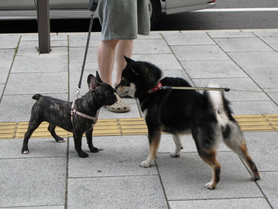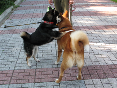 アパートを出るなりご近所さんのリキくんとばったり。ももにとっては大先輩犬のリキくんですが、いつも誰かれかまわず遊べ遊べというももですから、「小娘っおだまり!」っとばかりに一喝されることがしばしば^^;でもぐっさんは、リキくんに人気あるんだなぁ~(^_^)v