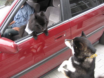 アパートまで帰ってきたら、こんどはお出かけ前のシュプちゃんに遭遇。こんな感じのご挨拶になりましたぁ(*^_^*)