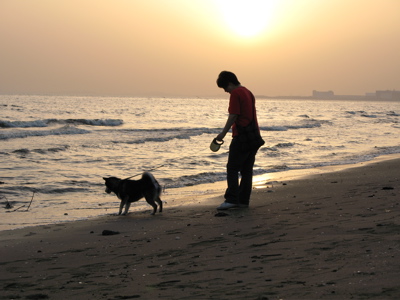 夕日がとってもキレイだったから、ももと一緒に海に出かけました。