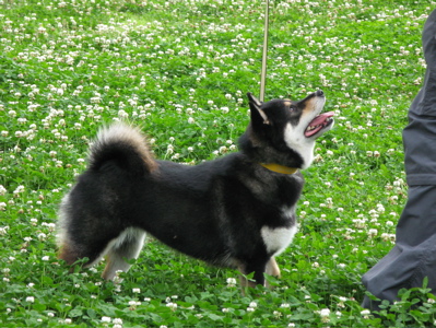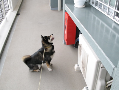 帰り際に寄った家の前の公園で、せっかく拾った何かの骨をぐっさんに取り上げられて、名残惜しげにぐっさんを見上げるももの図。残念ですが、骨は、返してあげられないね~^^