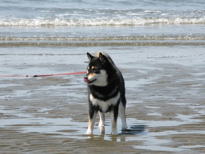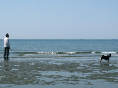 休日恒例、海の方まで朝散歩。「跳んでる風(ふう)?のもも」^^;