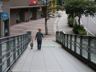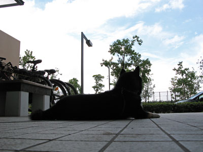 昨日から猛暑は少しなりを潜めて、ずいぶんと過ごしやすい今朝。オリンピック選手たちに負けじと少し羽目を外して走り回ったもんだから、すっかりバテぎみに歩道に座り込んでしまうもも。ヘラヘラしてごまかしても体力不足はバレバレだしぃ、まだまだですなぁー(笑)