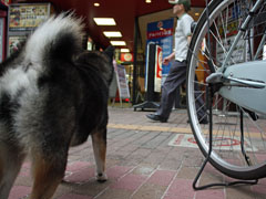 駅前の喧噪の中、お店の入り口でももハハが戻ってくるのを待つもも。ももにはいい迷惑なんでしょうけど、あなた中心に近頃の我が家は回っているんだし、たまにはいいんじゃないの?付き合ってくれても(^_-)