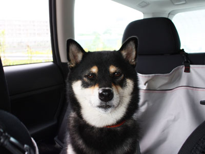 「こんな時間にどこ行くの?!」鼻をピカピカひからせて、キョトンとした顔で後部座席に座っているもも(笑)