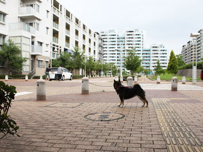 なのに、相変わらず町内の気に入ったアパートのエントランスをはしごしながらの散歩にならない散歩^^; 風が抜けるし、タイルもヒンヤリしてるから気持ちいいのはわかるんだけどねぇ。
