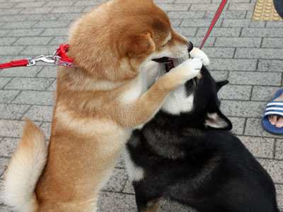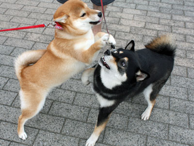 そうやってアパート近くの公園まで帰ってくると、こんどは柴ともニューフェースのぽぽちゃんとばったり。ほんの少し見ないうちにずいぶんとお姉さんになっていて、ほんとびっくり!
