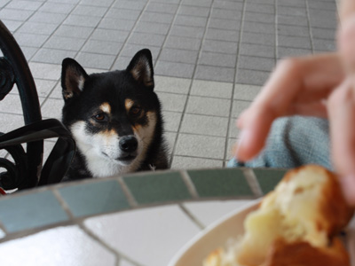 すこし久しぶりの記事。先週お腹をこわしていたももですが、この通りすっかりいつものももです。ぐっさんたちの朝ご飯のトーストをちょびっと貰おうと、膝の上でこんなポーズもしてみます、ズルイねぇー^^;