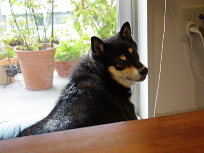 折からの台風9号の影響で、昨夜から断続的な雷雨。カミナリが大の苦手のももにとっては、この時季はとてもつらい季節なのです。不安で家の中をウロウロと歩き回っては、壁や床をほりほり。どこに逃げて行けるわけでもないのにとりあえず玄関まで行ってみては、わんわん吠えてみる。こんなことを疲れ果てるまで続けて、最終的には眠ってしまうのだけれど。実はカミナリ嫌いは、子犬の頃に夕方の散歩中の公園で、ももの目の前で上がった花火に腰を抜かすほど驚いたことがきっかけになっていて、花火嫌い、カミナリ嫌い、つまり大きな音のするものは、みんな大嫌い!と言った図式になってしまったのです。そんなトラウマは、成長と共に解消されるどころか、なぜかより激しくなっていて、人に限った話ではなく、悩ましいもんだなぁーと実感するばかりです。