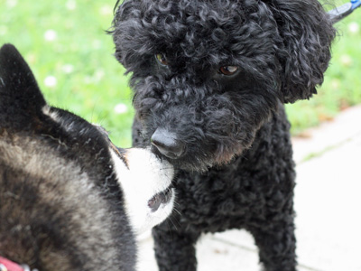 特徴は、柴犬(黒毛)のオスで、鼻筋(マズル上部)が少し茶色掛かっています。