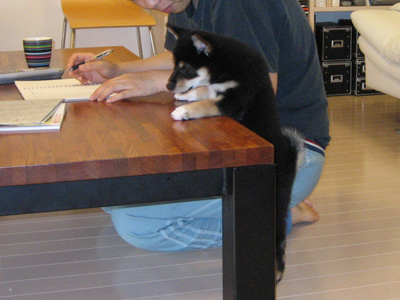 ももは、机の上がとても気になるのです。なんかおもしろうそうなもの乗ってるけど、触っちゃいけないって言われるし、いつも何か美味そうなものをそこで食べてるし(笑)興味津々なのよね。