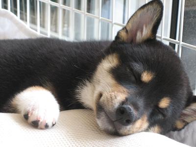 まだ、お散歩デビュー前のももにとっては、お医者に行くのはとても冒険、帰るとこんな感じでぐっすり。やっぱり家はいいなぁ~だよね(^_-)