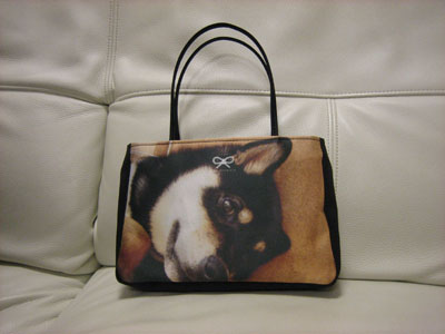 ずっと前に頼んでいたももの写真をプリントしたももハハのバッグが出来上がってきました。海を渡ってロンドンで作られたももバッグ。イギリスのデザイナーさんには日本犬のももはどんな風にみえたんだろうか?^^