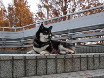 今朝の散歩、ぶらっと駅前まで来てみたら、何やら近くの会議場で就職セミナーでもあるのか、着慣れない真新しいスーツ姿を着た若いお兄さんやお姉さんがたくさん歩いていて、ちょっとびっくり。ももは人混みを逃れて歩道橋の踊り場に上がって、高見から見物。
