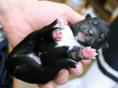 お母さんわんこの雛ちゃんが自分で噛み切ったヘソの緒が、よく見るとまだちょろっと残っていて、うーん何やら感動的。