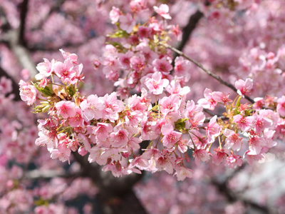 伊豆の踊子の舞台になった河津町で、桜が盛りに咲いているらしいニュースを昨夜見たところ。我が街の河津桜もすっかり満開です。