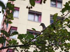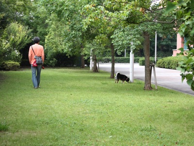 だけど、ちかごろ夕方の散歩となると、ぐずって出かけたくないもも。なぜかというと近くにある地元球団のホームスタジアムであがる花火(夏休みの間はずっとだった^^;)になんどか出会して、すっかり嫌気がさしてしまったから。なので、夕方の散歩は連れ出すまでが一苦労です。その分、朝の散歩ぐらいはゆったりと心穏やかに散歩したいし、させてやりたいと思うわけです。そして、ヤマバトが留まっている向こうに見えるのは、さりげなくスティーブン・ホールが設計したアパートだったりするし、街区ごとに趣も違って、ももの住む街はやっぱりステキなのです。