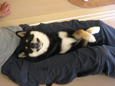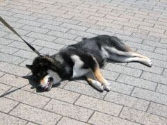 帰りは、アパートに近づいてくると、こんな感じで帰るのいやだよ~って、歩道でストライキ。毎度、中学生に「あの犬、倒れてるよ?」と指摘される始末^^;