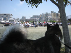 波打ち際で遊ぶのはいいけど、足が濡れるのはやっぱりちょっと嫌だなぁ~^^;毎日散歩の後の足洗いでさえ、やっとこさ慣れてきたとこなんだよねぇ。