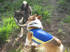 お次がごうちゃん(本名、豪太くん♪)。ごうちゃんは、コーギーの雄ですが、どうもももをメスとして見てくれておりません^^;ごうちゃんの飼い主さんのお話しによると、ごうちゃんメスワンコにはストーキング常習犯らしく、なのにうちのももには結構平常心・・・むむっ^^;悲しい・・・(笑)でもいいんだ~大の仲良しだしね。